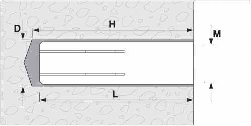 Приемущества: Визуальный контроль правильной анкеровки, благодаря форме монтажного инструмента. Возможность монтажа в основаниях, в которых невозможно просверлить глубокое отверстие. Легкий и быстрый монтаж молотком легкий и быстрый монтаж молотком, легкий монтаж и демонтаж крепленого элемента. Возможность использования шпилек разной длины или болтов – неограниченная толщина крепленого элемента.