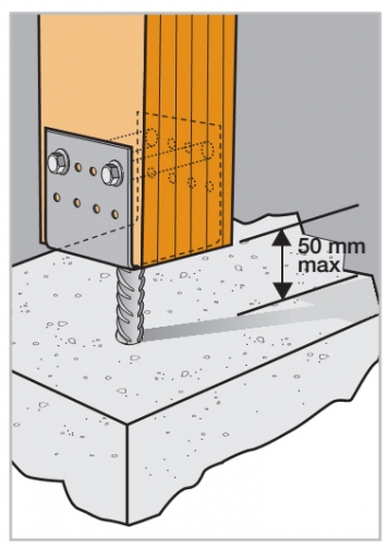 Опора U деревянного столба оцинкованная для бетонирования. Анкерная опора устанавливается перед, или во время, бетонирования поверхности опирания столба.