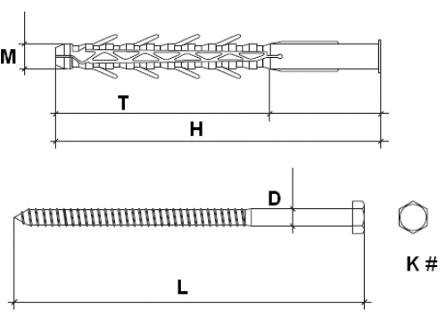 Представляет собой нейлоновый дюбель и шуруп с покрытием из гальванической стали белого цвета шестигранной головкой и толщиной покрытия не меньше 8 мм.