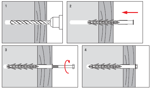 Используется для крепления деревянных планок, брусков для фасадов зданий, металлических профилей к пустотелым строительным материалам, таким как пустотелый кирпич, газобетон, легкий бетон.